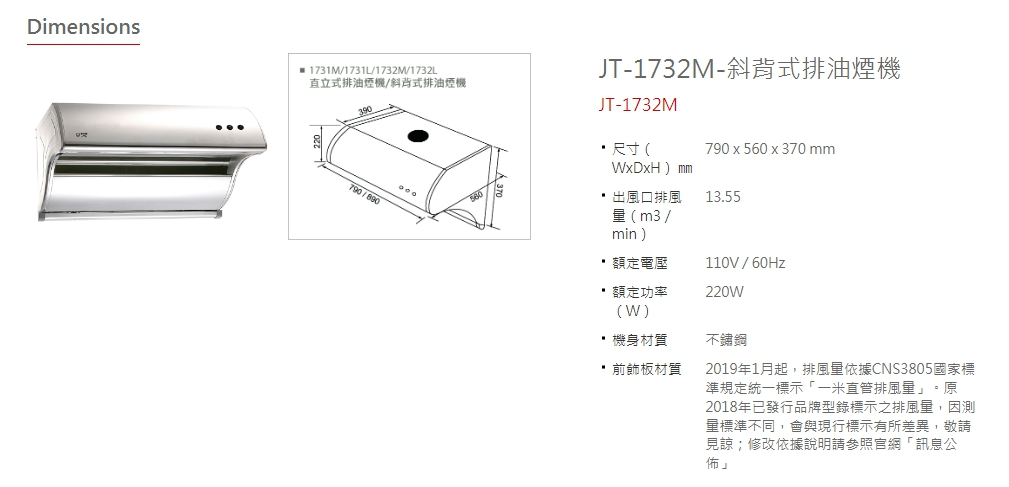 喜特麗 JT-1732M 斜背式排油煙機 【80CM】