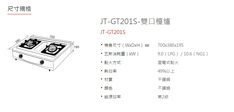 全系列瓦斯爐使用日本熱電偶與台灣製拷克
