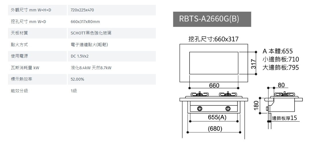 林內 Rinnai RBTS-A2660G(B) 嵌入式緻溫玻璃雙口爐