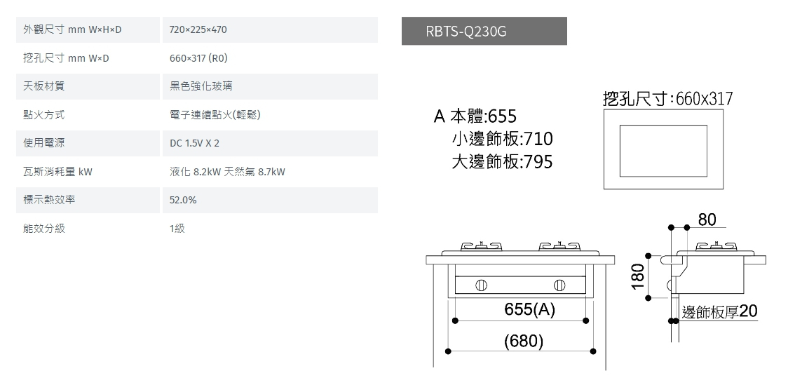 林內 Rinnai RBTS-Q230G(B) 嵌入式感溫玻璃雙口爐